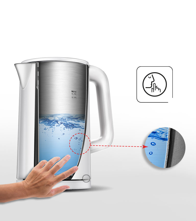 Cicha praca - podwójne ścianki tłumią dźwięk gotującej się wody, dzięki czemu czajnik pracuje bardzo cicho, a dodatkowo znacznie dłużej utrzymuje temperaturę wewnątrz urządzenia.
