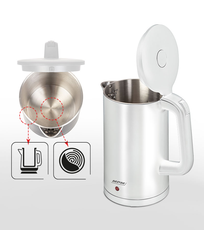 Dzbanek wewnętrzny zbudowany jest z wysokiej jakości stali nierdzewnej o jednolitej konstrukcji, która jest pozbawiona wszelkich łączeń lub spoiw. Taka budowa czajnika, czyni je niezwykle trwałym i niezawodnym. Nie musisz się więc martwić o problemy z rozszczelnieniem i przeciekaniem.