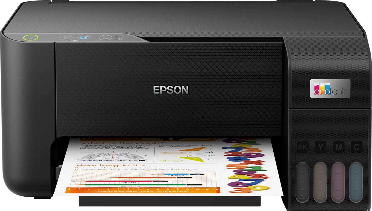 Drukarki EcoTank zapewniają bezproblemowe drukowanie w domu - Pojemniki na atrament o dużej pojemności można uzupełniać bez bałaganu, a butelki z blokadą zaprojektowano tak, aby dany kolor atramentu można było wlać tylko do odpowiadającego mu pojemnika. Wskaźnik poziomu atramentu znajduje się z przodu urządzenia, wyraźnie informując użytkownika, kiedy należy go uzupełnić.