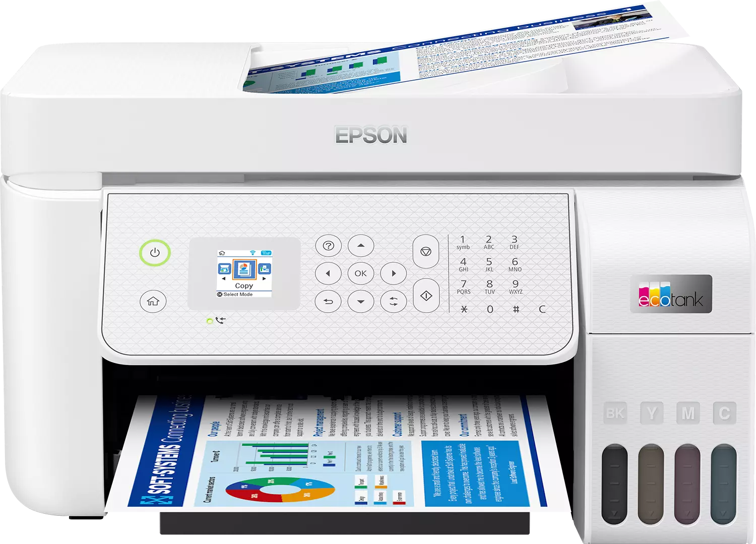 EcoTank zapewnia bezproblemowe drukowanie w domu i małym biurze – pojemniki na atrament o dużej pojemności można uzupełniać bez bałaganu, a butelki z blokadą zaprojektowano tak, aby dany kolor atramentu można było wlać tylko do odpowiadającego mu pojemnika.