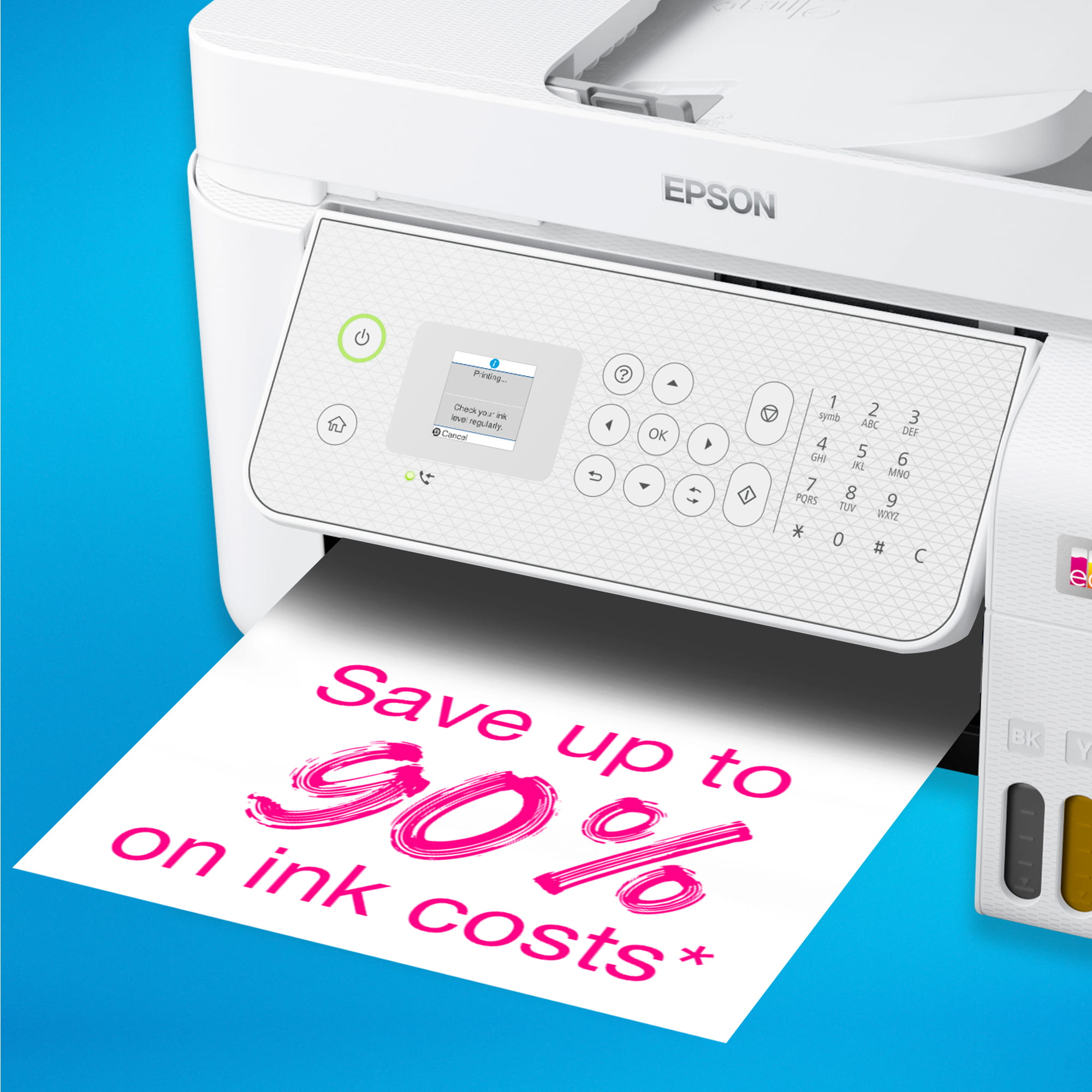 Zaoszczędź do 90% na kosztach drukowania* dzięki zbiornikom na atrament z możliwością napełniania - Drukarka wielofunkcyjna A4 z automatycznym podajnikiem dokumentów i faksem