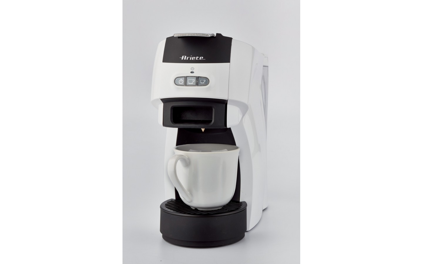 Kompaktowy i łatwy w użyciu ekspres ciśnieniowy, który dzięki niezwykłej szufladce pozwoli Ci na przyrządzenie zarówno kawy mielonej, jak i kawy z tabletek E.S.E. Posiada funkcję, dzięki której zaprogramować małe i duże espresso. Parzy kawę pod ciśnieniem 15 Barów. Posiada wbudowany zbiornik na wodę o pojemności 0,6 litra. Jest wyjmowany, co pozwala na dokładne jego oczyszczenie. Jego moc to 1100 W. Rozmiar urządzenia (cm): 18,5 x 37 x 35.