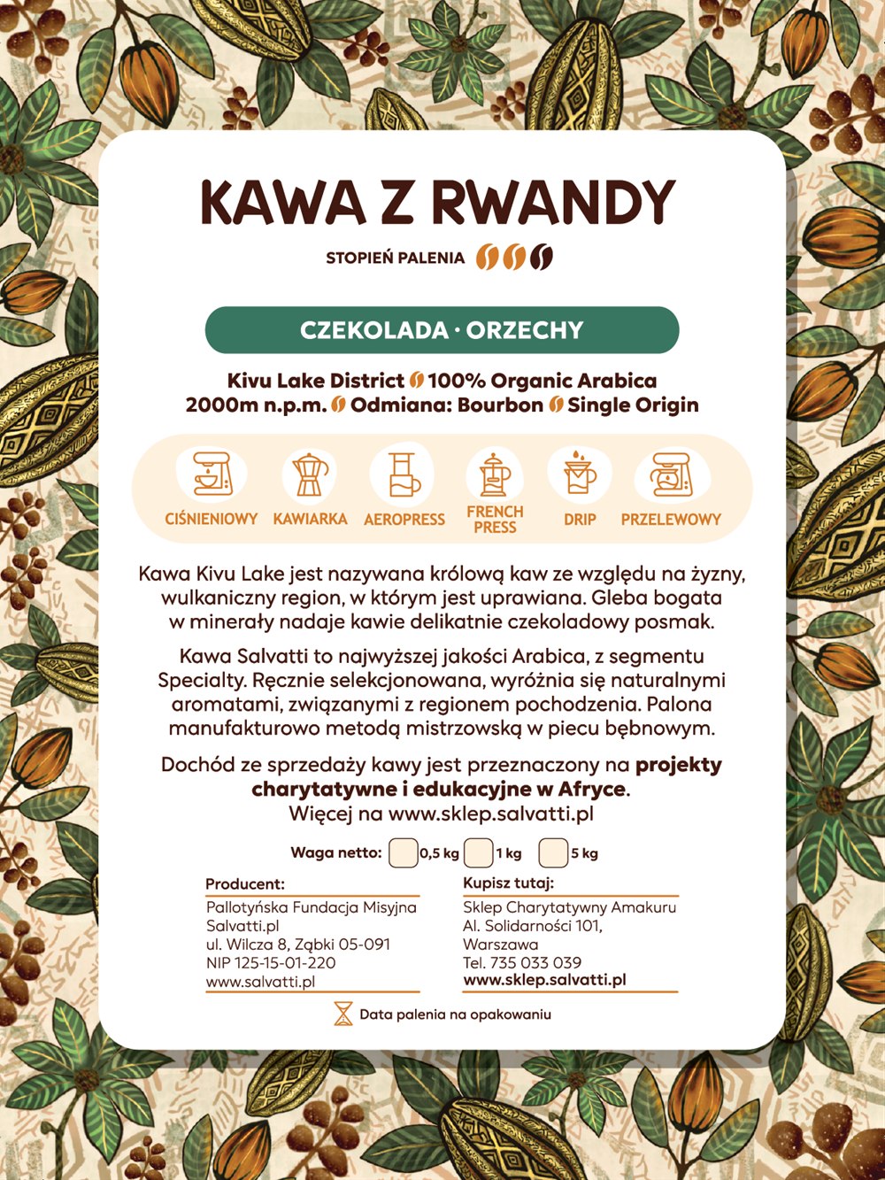 Kupując kawę wspierasz lokalnych plantatorów! Dochód ze sprzedaży jest przeznaczony na rozwój edukacji i opieki medycznej głównie w krajach Afryki, Ameryki Południowej i Azji, gdzie pracują misjonarze. Wspieramy prowadzone przez nich dzieła, przedszkola, szkoły, szpitale i ośrodki zdrowia.