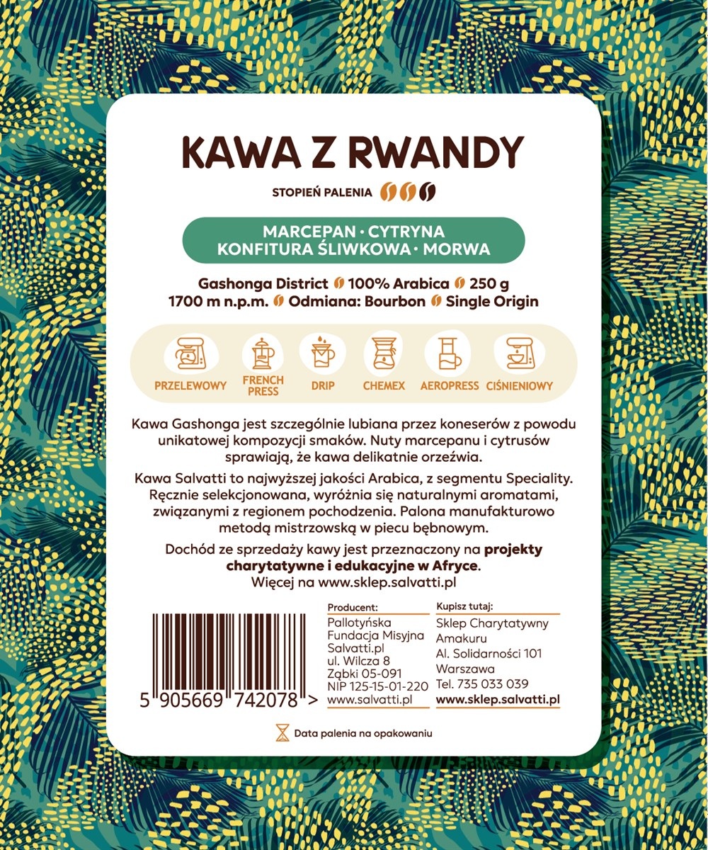 Kawa Speciality Salvatti Gashonga zalecana do parzenia metodami alternatywnymi i przelewowymi.