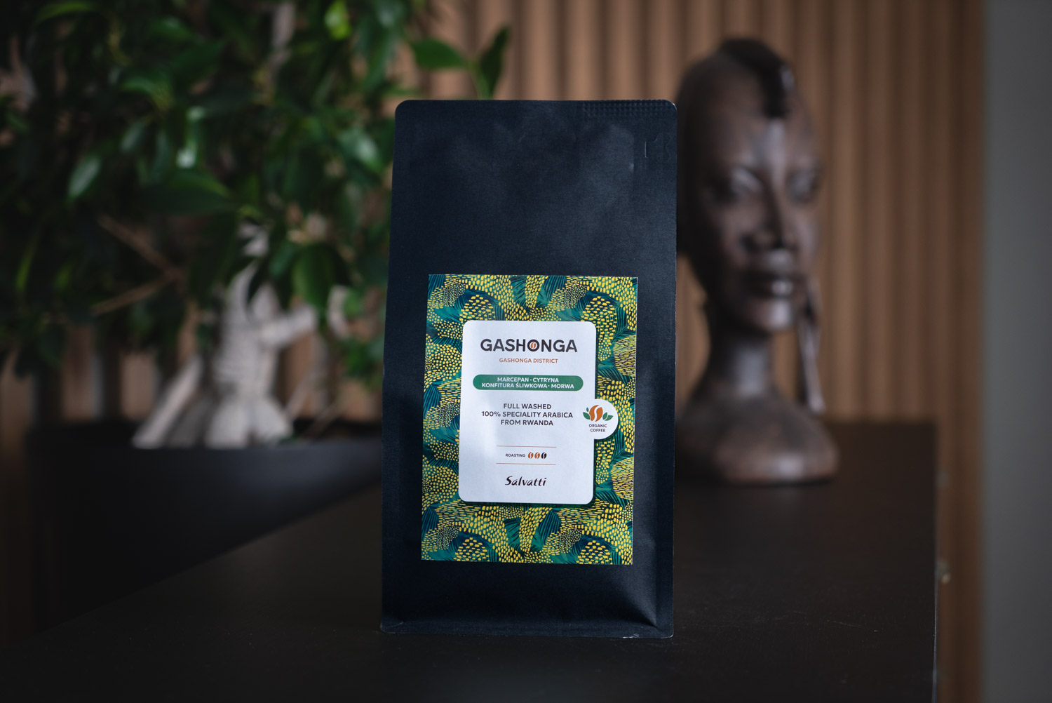 O unikalności kawy Salvatti Gashonga stanowi zupełnie nadzwyczajna nuta marcepanowa z mocą słodyczy. Kawa jest złożona w smaku, na który składa się delikatna smuga ciemnego kakao, słodko kwaskowatej morwy, nieco śliwkowej konfitury, dzika róża i skórka cytrynowa. Bardzo unikatowa w smaku, zalecana dla kawoszy szukających nieprzeciętnych aromatów w kawie.