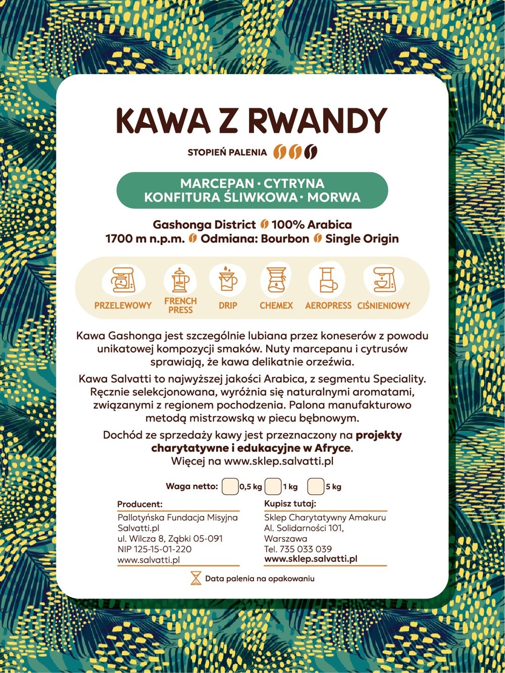 Kawa Speciality Salvatti Gashonga zalecana do parzenia metodami alternatywnymi i przelewowymi.