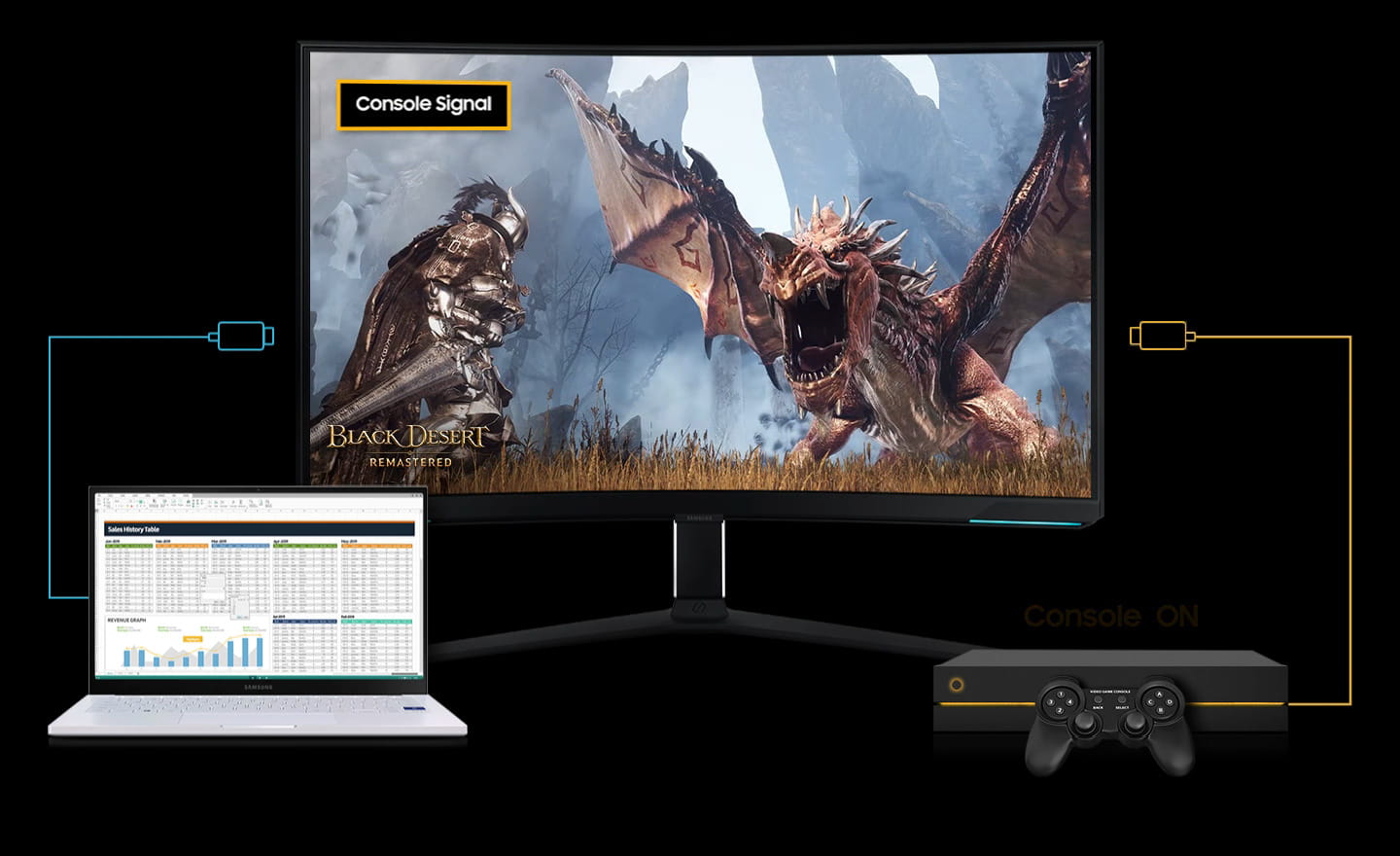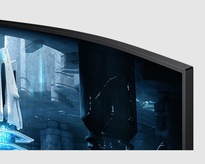 Pełne życia sceny wciągają cię jeszcze bardziej. Teraz możesz doświadczyć jeszcze wyższego poziomu wciągającej gry, lepszej niż kiedykolwiek wcześniej. 32-calowy, ultraszeroki ekran o krzywiźnie 1000R wyświetla obrazy również w obszarze widzenia obwodowego pozwala ci wejść w skórę postaci.