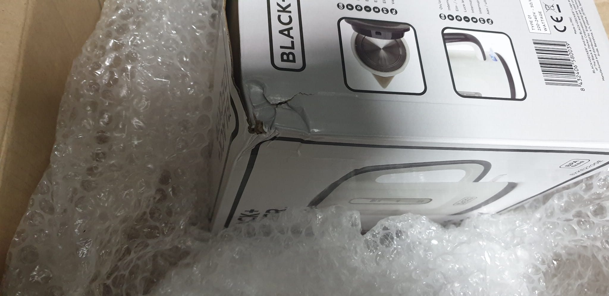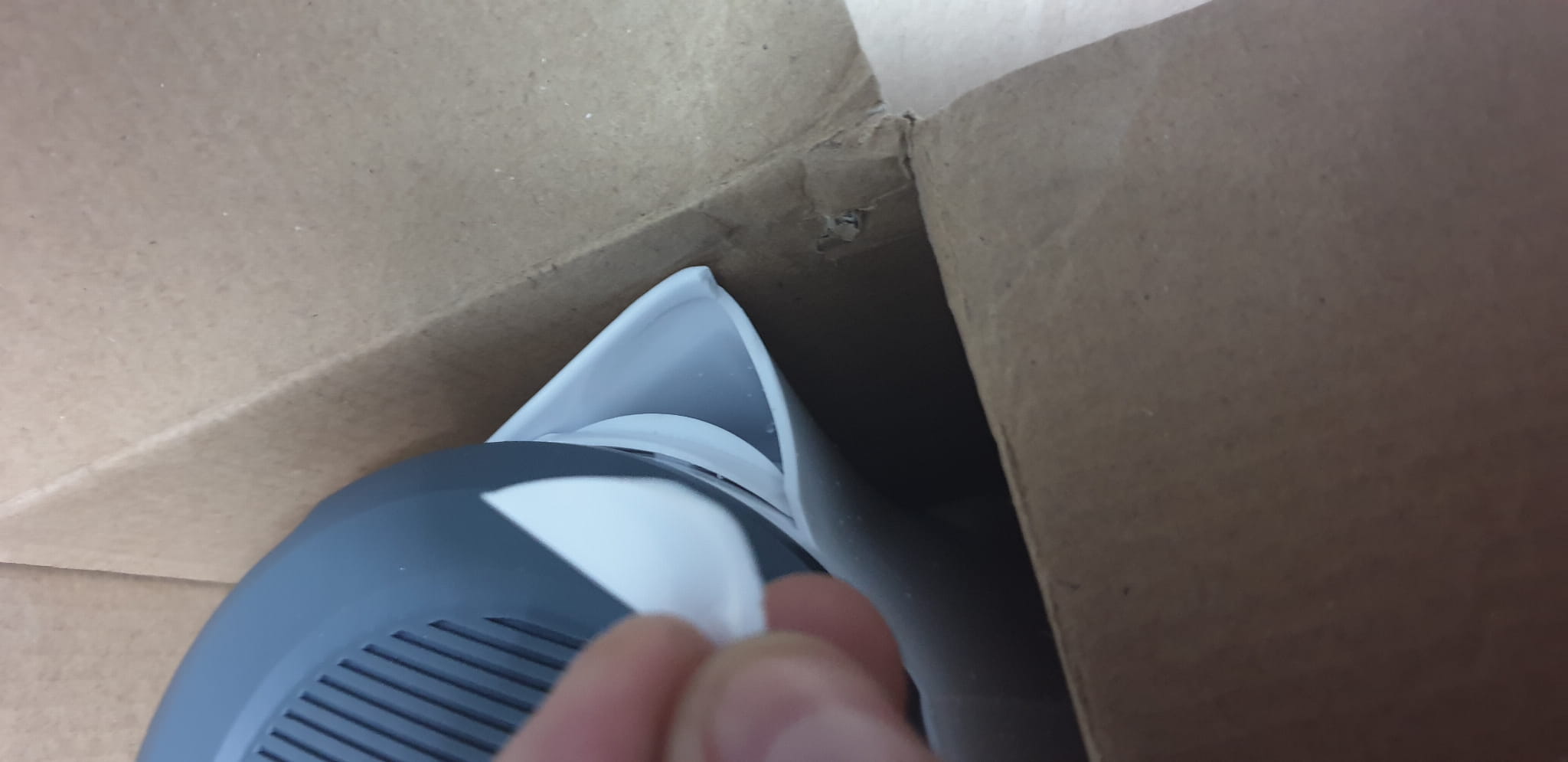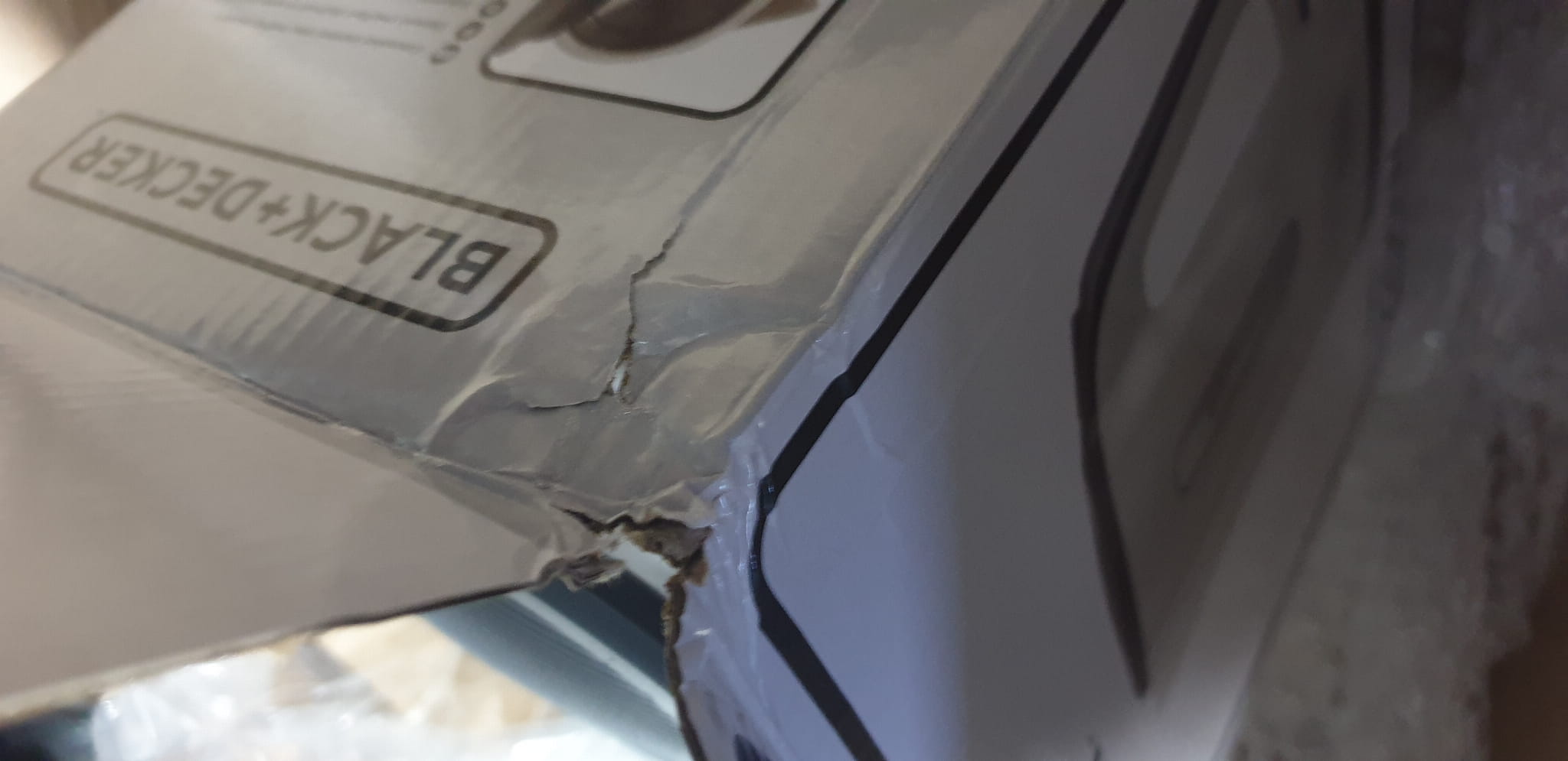 Towar uszkodzony w transporcie, obłamany element obudowy, zgniecione opakowanie, produkt sprawny.