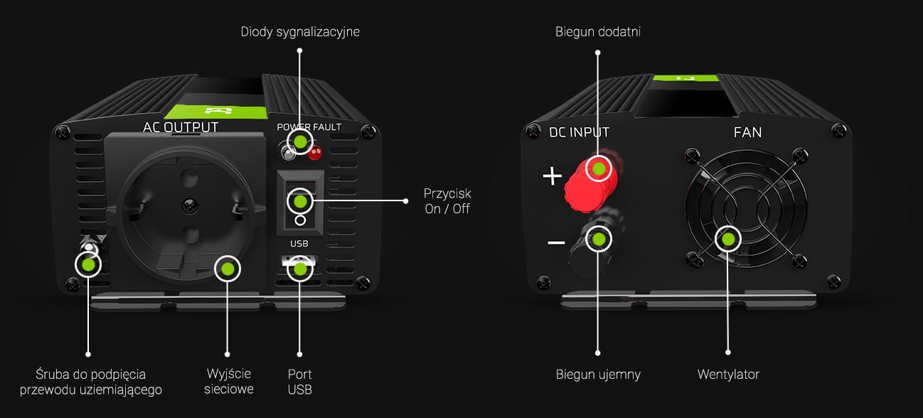 Przetwornice marki Green Cell posiadają wymienny bezpiecznik, który stanowi niezbędne zabezpieczenie dla przetwornicy oraz podłączonych urządzeń. Jego wymiana jest bardzo prosta i nie powinna sprawić nikomu najmniejszych problemów. Do każdej przetwornicy dołączamy zapasowe bezpieczniki, aby zagwarantować pełne bezpieczeństwo i jak najdłuższe działanie sprzętu.